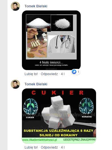 Wszystkie te mądre głowy prawiące jakie to głupie że chlejemy,że palimy, spożywamy dużo kawy powinny wiedzieć co powoduje zwykły wszechobecny biały cukier (wysoko przetworzona sacharoza). zastanawiam się ile tych tęgich łbów codziennie słodzi sobie herbatę, szama ciastko, cukierka, popija słodkim napojem. Z pełną premedytacją i z czystym sumieniem można nazwać ich ćpunami, bagatelizują i nie przyznają się do swojego uzależnienia, ba, mało tego, ciskają nam wzniosłe prawdy jako jedyne i niepodważalne nawet zaraz po zażyciu. Ja bym zglebował w kaftan i do szpitala na odwyk wysłał gnoja.
